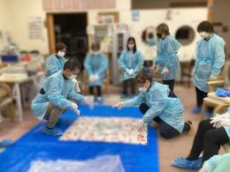 靴下ハギレの分別作業